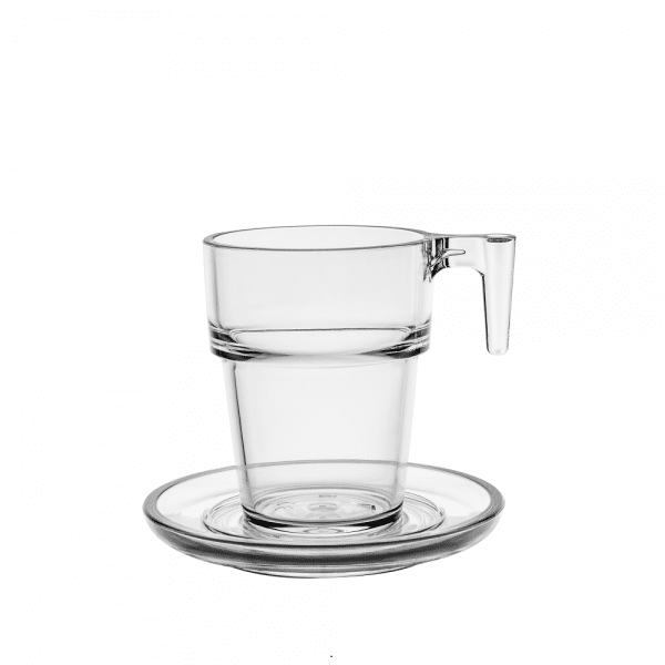 Tasse à café 21cl incassable SANS SOUS-TASSES, réutilisable et empilable.